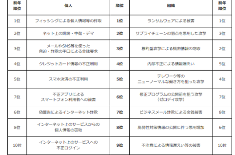 IPAより「情報セキュリティ10大脅威 2023」が1月25日に発表されました 順次、資料を公開とのこと 個人向け脅威の順位を見ると1~5位までは昨年と同じなので、今回のレターでは「情報セキュリティ10大脅威 2022」...
