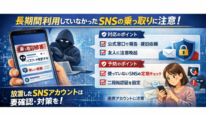 特に3.予防のポイントの「使っていないSNSは、定期的に確認または削除を検討する」が重要です。