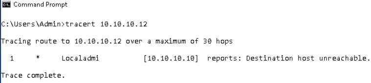 到達できていない場合は以下のような感じで表示されます。(相手のアダプタを無効化)